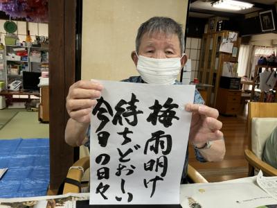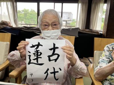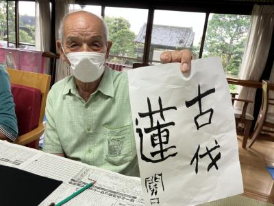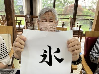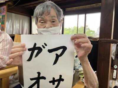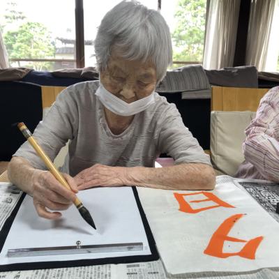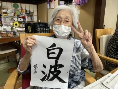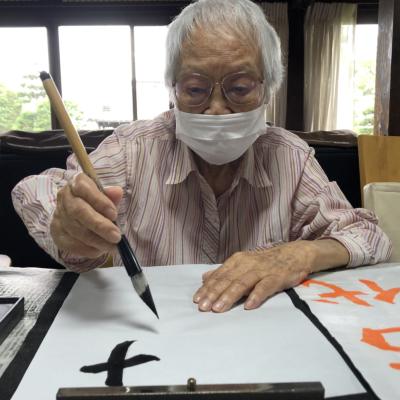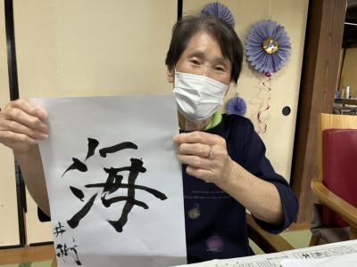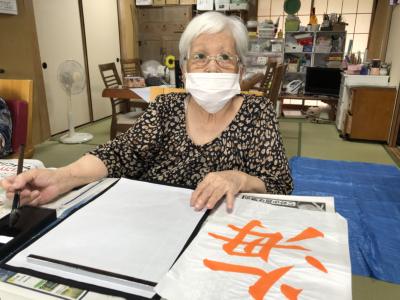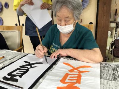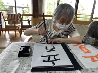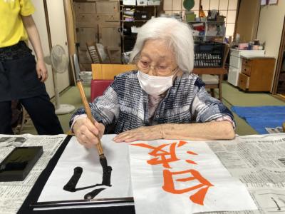 母は立位にて筆を持ち、集中されていましたよ~✨
