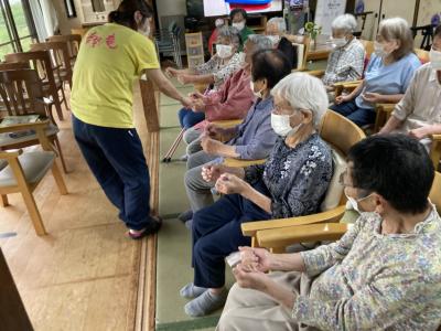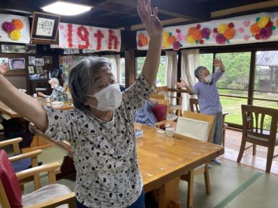 朝会では歌謡曲に合わせて身体を動かしていますひらめき