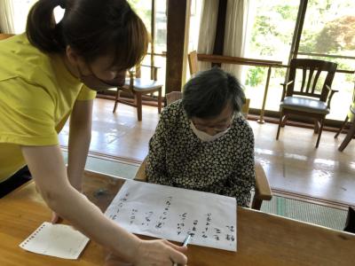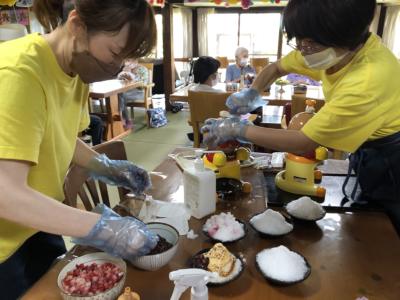 皆さんにお品書きを見ながらかき氷のメニューを決めて頂きました