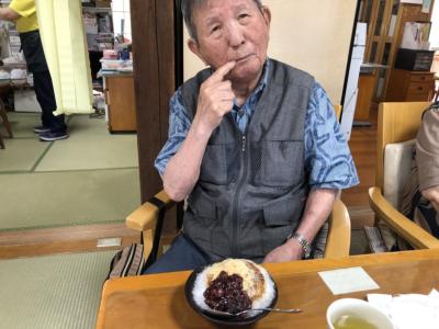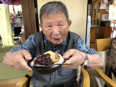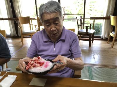 まだかまだかと指をくわえて待っていた父のかき氷が目の前に・・・・