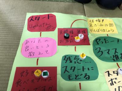 マスに書かれたお題を行いながら。皆さんの笑顔や笑い声が沢山聞こえて来ました