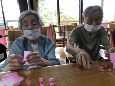 口遊みながらテンポ良くクルクルお花紙を丸める皆さんです