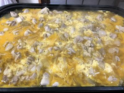親子丼もとろ~~り卵で美味しそうに煮えて来てますグッド (上向き矢印)