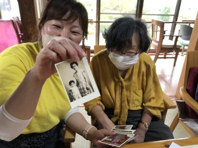 母がお持ち下さった写真を見て、思い出を振り返りながら