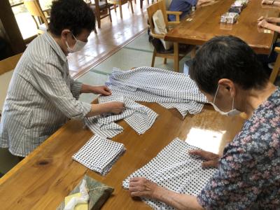 母達がキレイに角を揃え乍ら畳んで下さっています