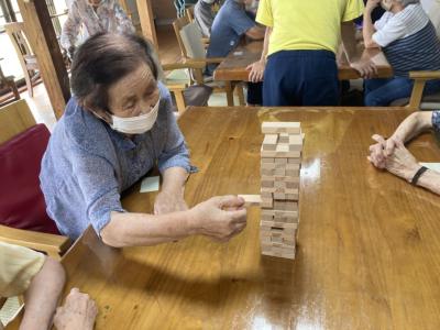 ジェンガとは木製のタワーを倒さないようブロックを抜き取り