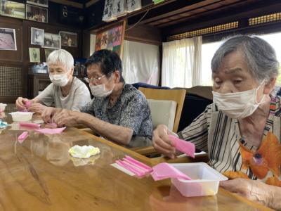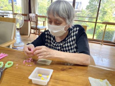 暦作りは指先の細かやな動きや、集中力、コミュニュケーショ