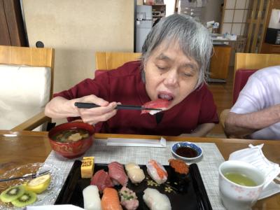 ネタから食べるわ~わーい (嬉しい顔)手 (チョキ)