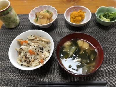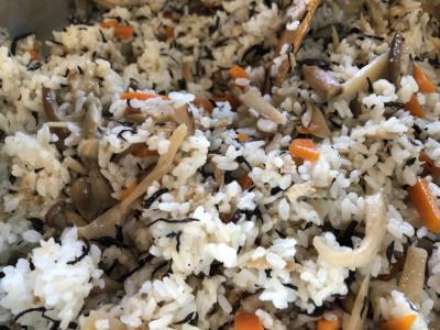 きのこ、人参、ひじき、油揚げの混ぜご飯の出来上がり