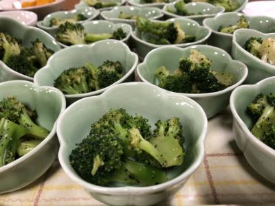ブロッコリーの胡麻和えを作ってくれています