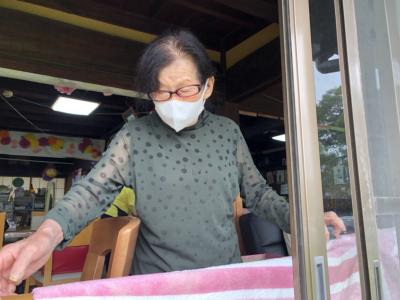 昼食後、洗濯物を干してくださる母です