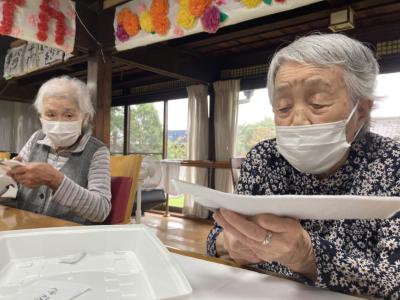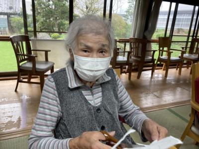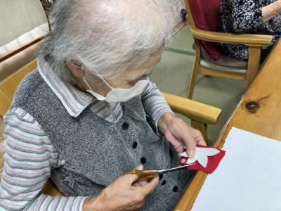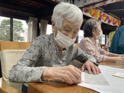 本日のレクリエーションは季節感を感じる押絵です🍂