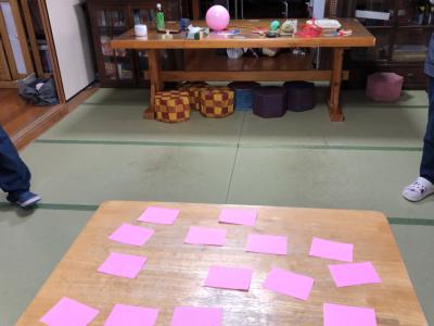 お題を確認しながらテーブルに並べられたグッズを探す母達✨