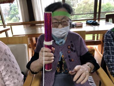 ラップの芯で作られたグリップをクルクル巻いて手指の運動にもなりますね~~