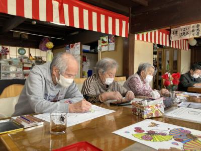 脳トレは計算や塗り絵、ご自身で選んでいただいて楽しむ