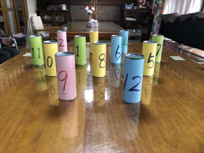 倒れた缶の数字を足し算して、得点としていきますよ~