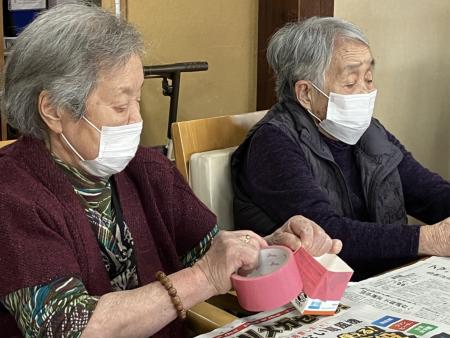 牛乳パックにカラーテープを巻いてお化粧していきました~るんるん (音符)