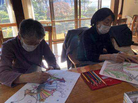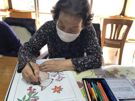 塗り絵に取り組まれている時の皆さんは、凄い集中力です