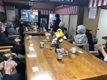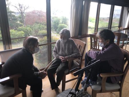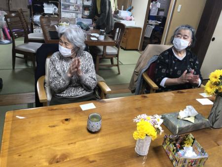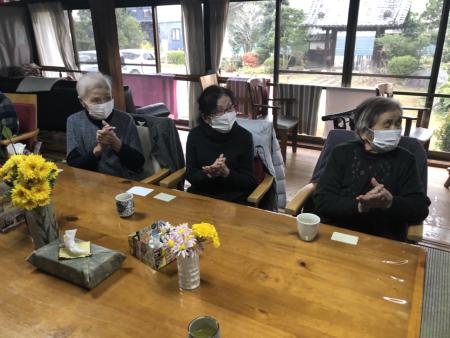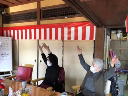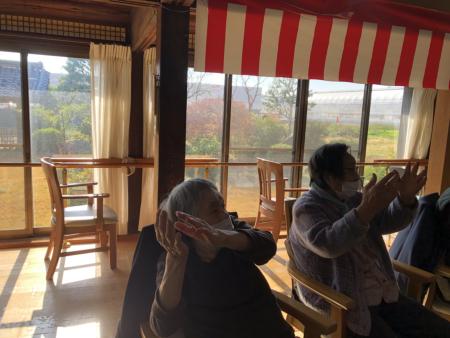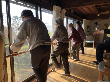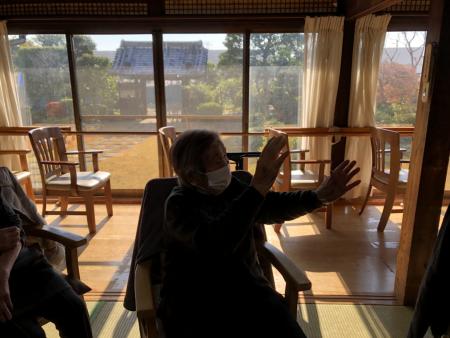 お日様が出てきた縁側で、ポカポカ機能訓練をしていますひらめき