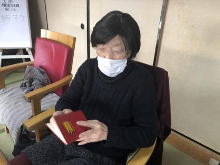 昔の手帳を、たまに見ると面白いのよ指でOKぴかぴか (新しい) と見せてくれました目
