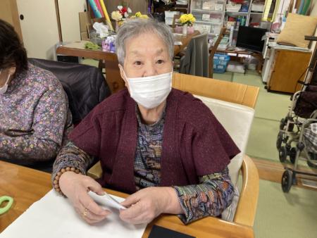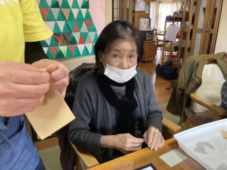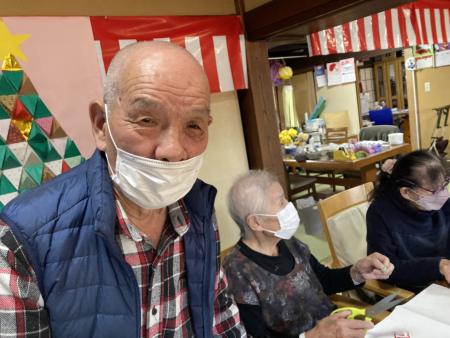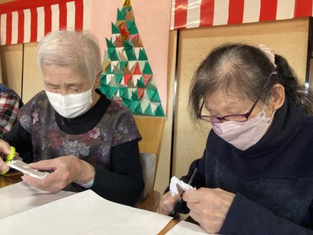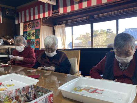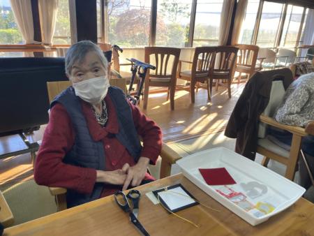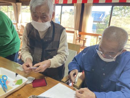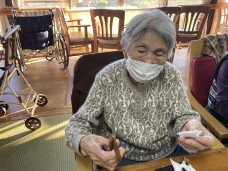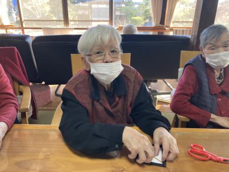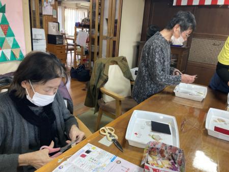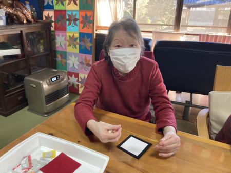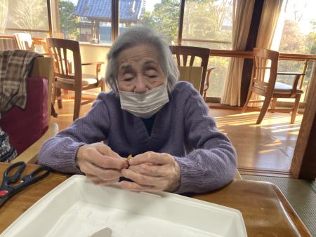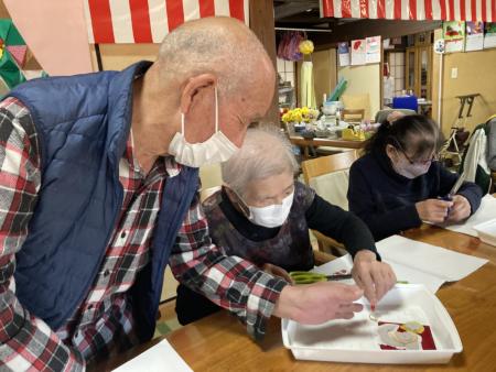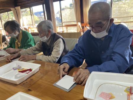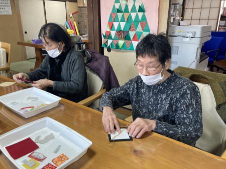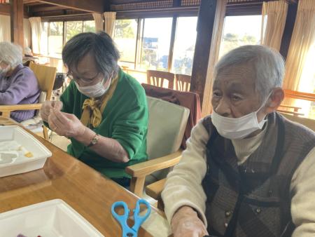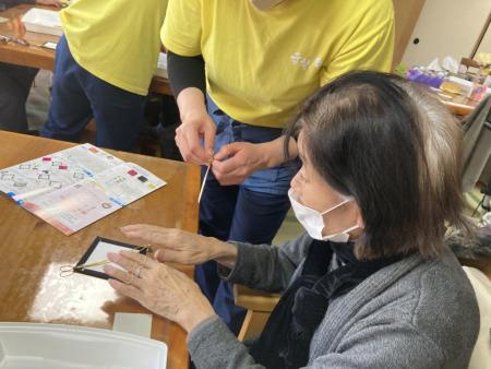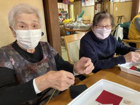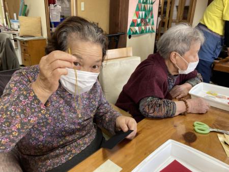 午後のレクリエーションは干支のタペストリー作りとなっています