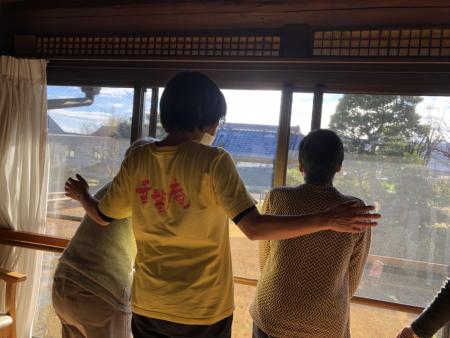 広い庭を眺めながらの機能訓練