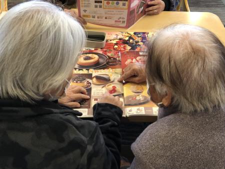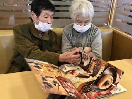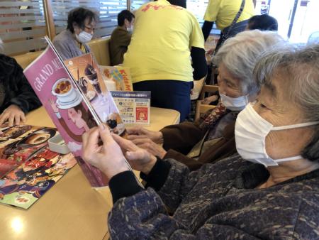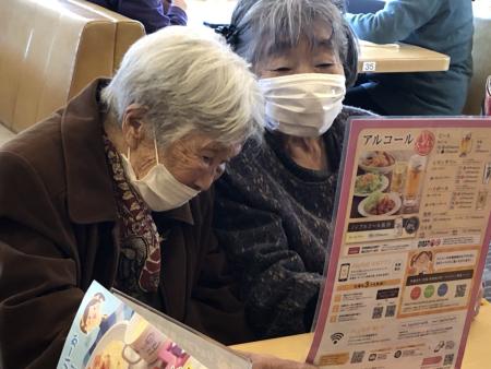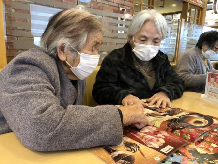メニューを見てはしゃぐ母たち