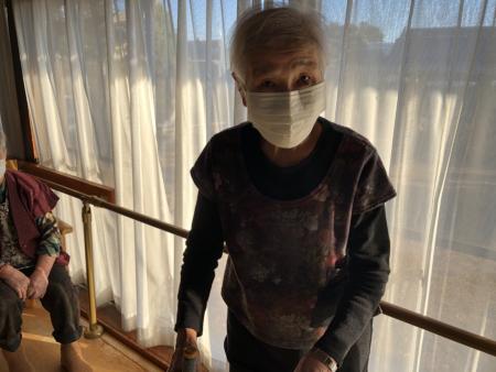 朝のお茶を飲みながら 笑顔いっぱいの母(*´∀`*)