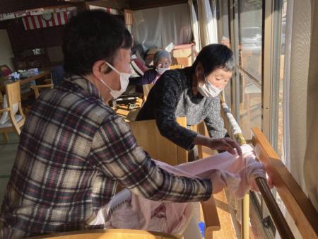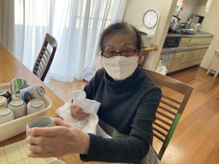 昼食後は家事動作の一環でお手伝いをして下さっています