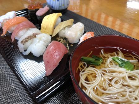 昼食には父も母も大好きなお寿司と温麵をご用意させていただきました