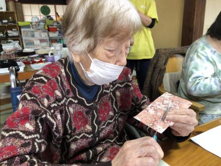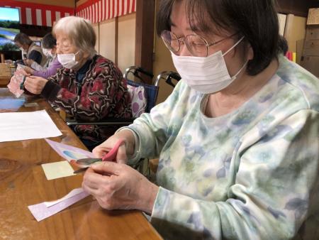 紙に和柄用紙を張り付け、ハサミでカット✂✨