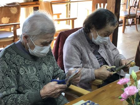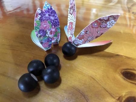 小さくて見ずらいと思いますが、折り鶴も折り紙で折りました