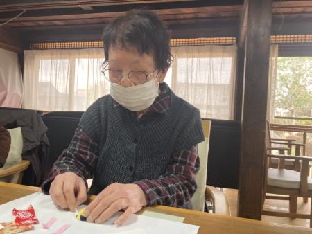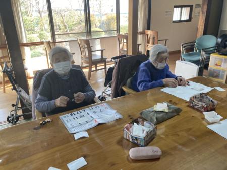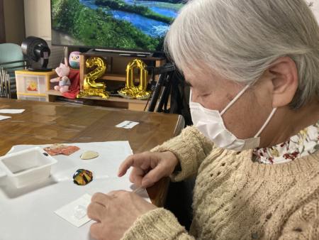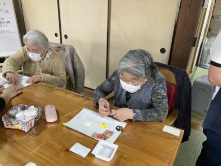 ハマグリのお雛様作りレクリエーションは指先を使った作業