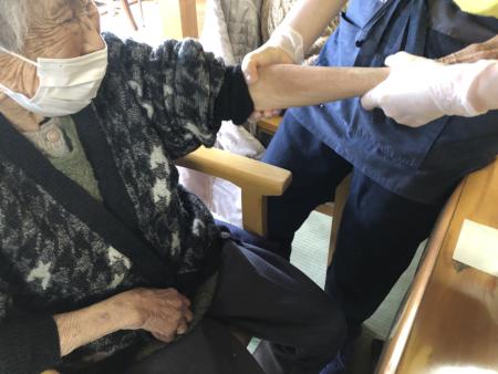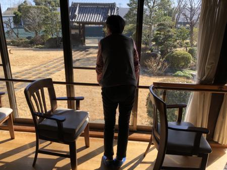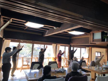 朝の体操も足の丈夫な方は縁側で立って体操します