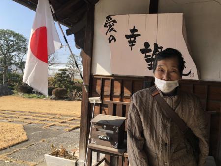 来庵され、玄関先に掲げられた日の丸を見て