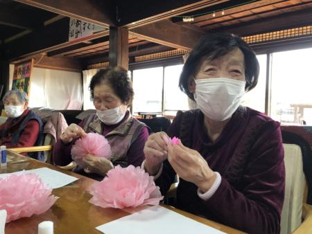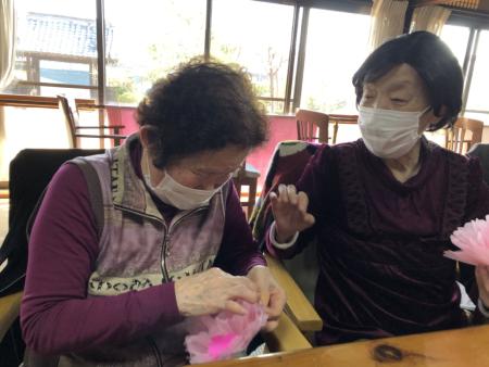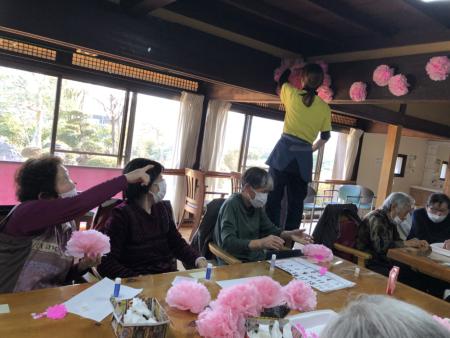 午後は手工芸にて桜の壁飾り作りの続きを行います🌸 🌸 🌸