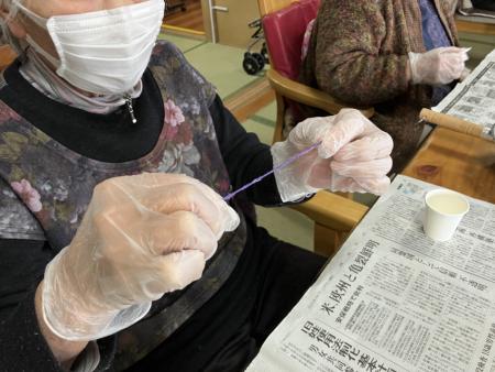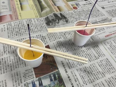 真っ直ぐにした芯を割り箸でしっかりと固定します