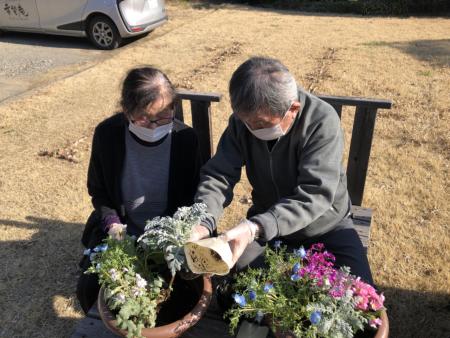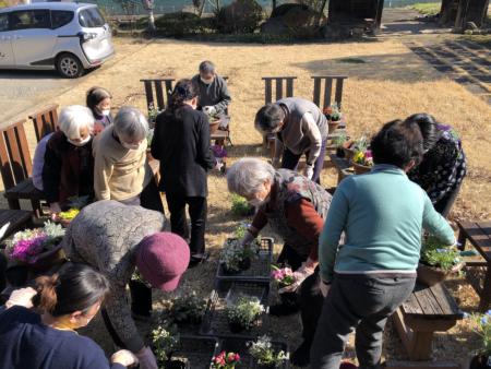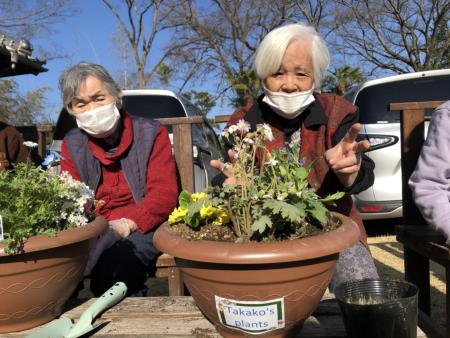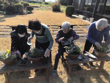 今日は、暖かくなったので、お庭で寄せ植えをしたいと思いますひらめき