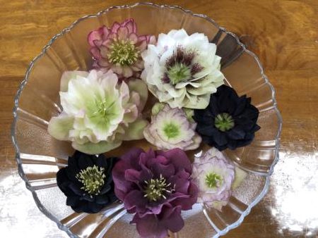 お部屋のテーブルの上にはクリスマスローズの花手水