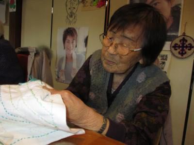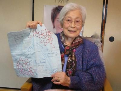 お裁縫が得意なお母さんは刺し子で布巾作り![]()