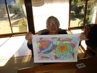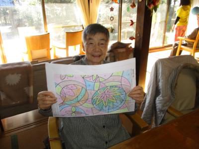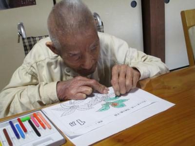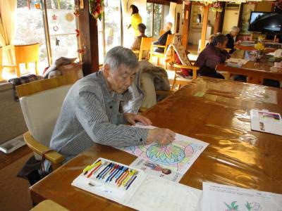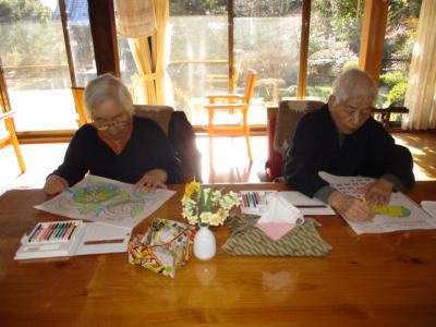 朝のセレモニーを終え、数字塗り絵やカレンダー塗り絵で