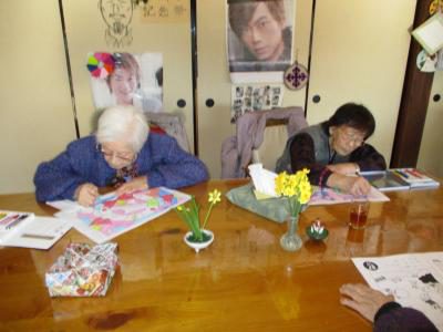 こちらのお母さんは折り紙で鶴や奴さんを作ります![]()