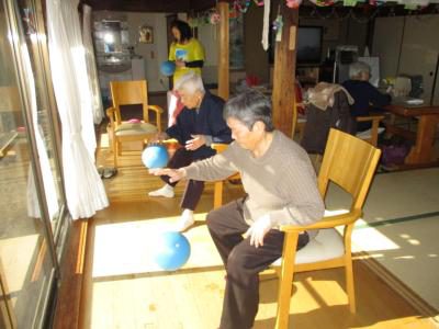 足上げやボールを使って上下肢の筋力アップ![]()