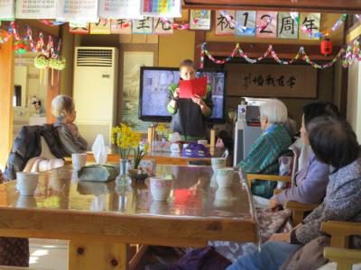 朝会ではスタッフの幸望訓読み上げに耳を傾けて
