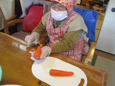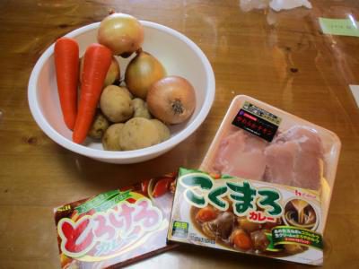 ジァガイモ、人参、玉ねぎを手分けして皮むきを