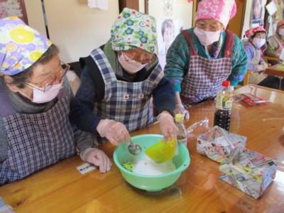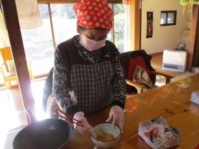 こちらのお母さんは、卵を混ぜて下さっています![]()