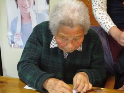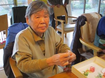 こちらは餅花飾り作り![]()