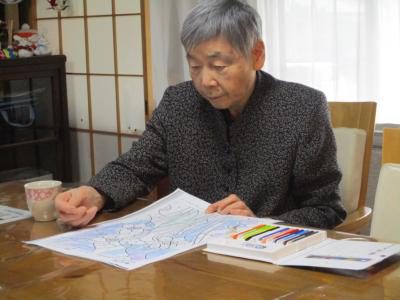 数字塗り絵に取り組むお母さんは、何番が何色かじっくり考えながら番号の色に合った色鉛筆を探しながら、綺麗に塗られています![]()