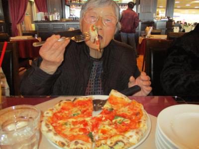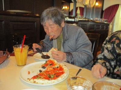 こちらのお母さんは特大のピザ![]()