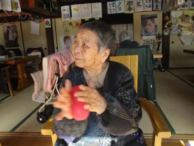 ボールを手に持ち、握って~離して~ボールが手から落ちないよう加減するのも運動の内ですよぉ~! 指の力がアップしますね~~